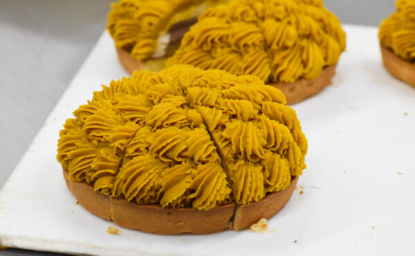 北海道産のえびすかぼちゃのクリームをたっぷり絞ったこの時期にぴったりの贅沢なタルト。